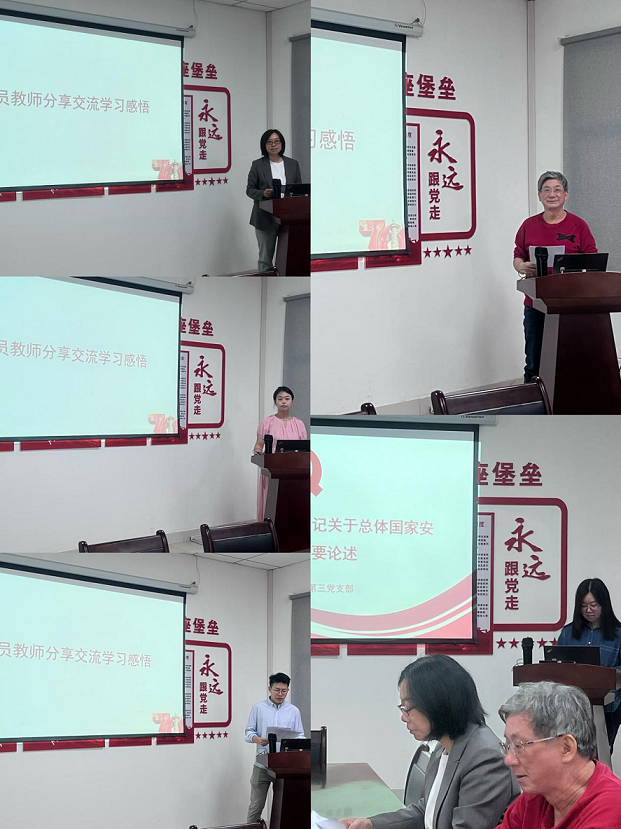 在经过深入学习讨论后,教师党员们一致达成共识,一定要强化教师的责任担当意识,加强总体国家安全观的实践教育,教育广大青年增强斗争本领、提升忧患意识、建立战略思维,注重在掌握国家安全理论、走近国家安全实践、感悟国家安全重大意义中深化学习理解,用好新媒体教育手段,探索沉浸式、互动式等教育方式,推动高校国家安全教育常态化、长效化。