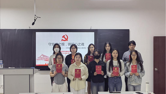 党课开始前,乔玉洁老师向每位学生党员发放了《中国共产党纪律处分条例》手册,并强调以学习《中国共产党纪律处分条例》为重点,逐章逐条学、深入细致学、联系实际学,充分认识开展党纪学习教育的重要意义,将纪律要求内化于心,外化于行。作为新时代的大学生党员,要时刻保持清醒头脑,严守党的纪律,做到言行一致、表里如一。