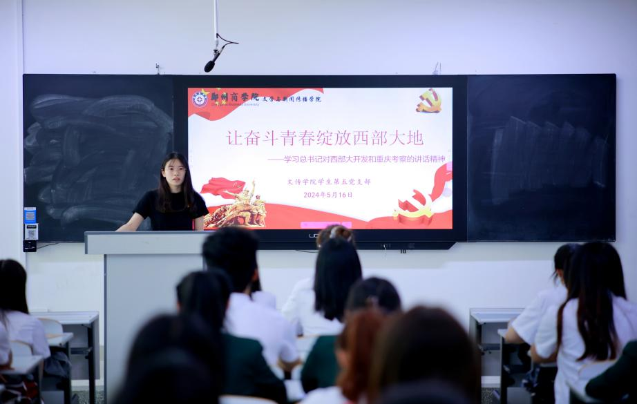 为深入学习贯彻习近平总书记在新时代推动西部大开发座谈会上的重要讲话精神和在重庆考察时的重要讲话精神,厚植家国情怀,勇担时代重任。5月16日,文传学院学生第五党支部在自力楼207开展“让奋斗青春绽放西部大地”专题理论学习会。