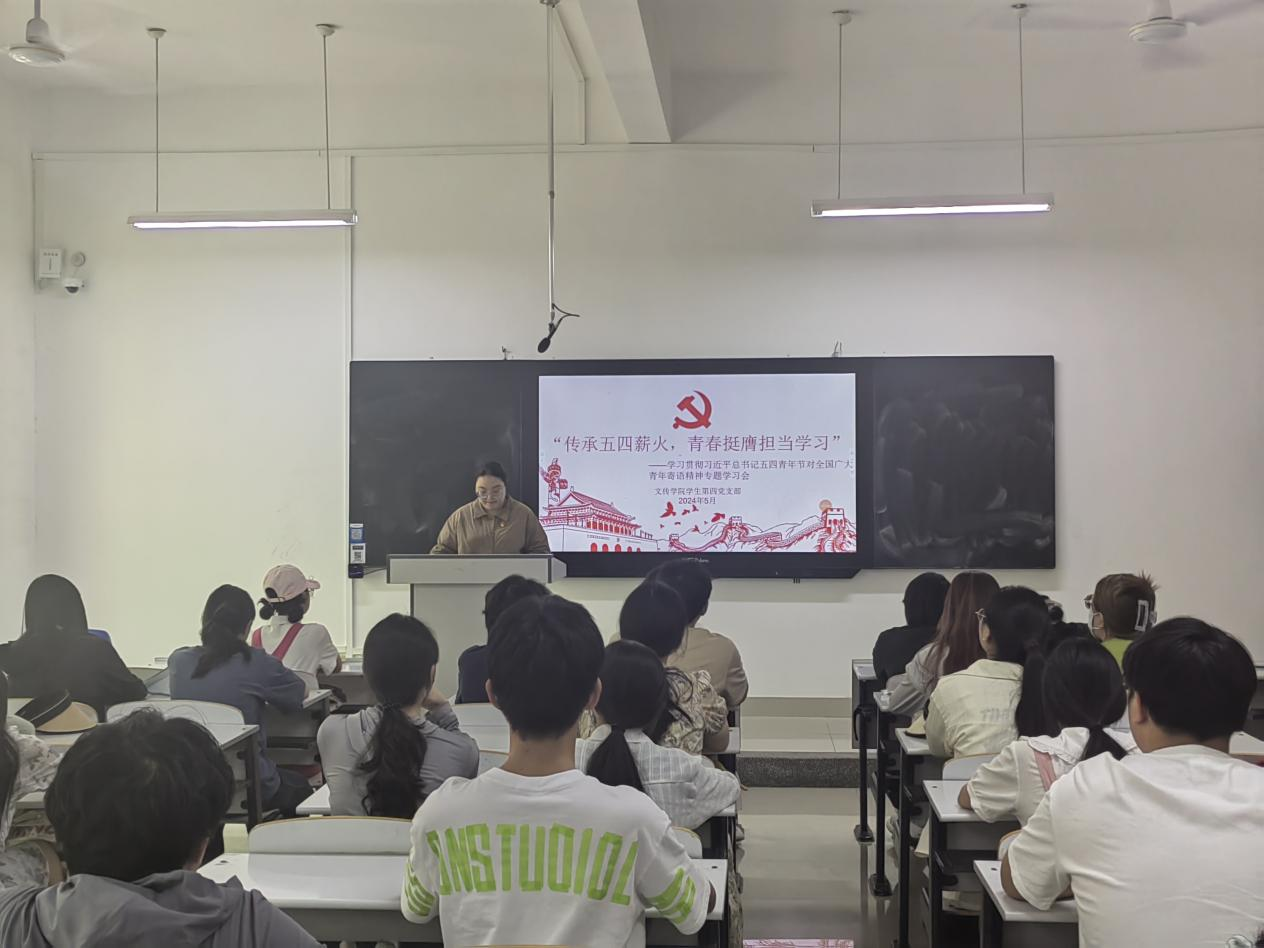 为了学习贯彻习近平总书记五四青年节对全国广大青年寄语精神,文传学院学生第四党支部于5月17日在自力楼207开展“传承五四薪火,青春挺膺担当学习”专题学习会议。此次会议由支部书记乔玉洁老师主持,支部全体党员及积极分子共同参与此次活动。