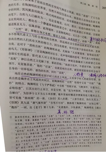 为了让学生更好地理解和感受陶渊明的精神境界,本案例还设计了课堂互动环节。课堂上随机抽取2名学生谈对陶渊明诗歌主题和风格特点的认识,通过分享和交流,提升学生的思辨能力和语言表达能力。课堂上有学生提出了有关问题请老师进一步阐释。此外,还引导学生结合现实生活,思考如何在现代社会中践行陶渊明的精神品质,将课程思政落到实处。