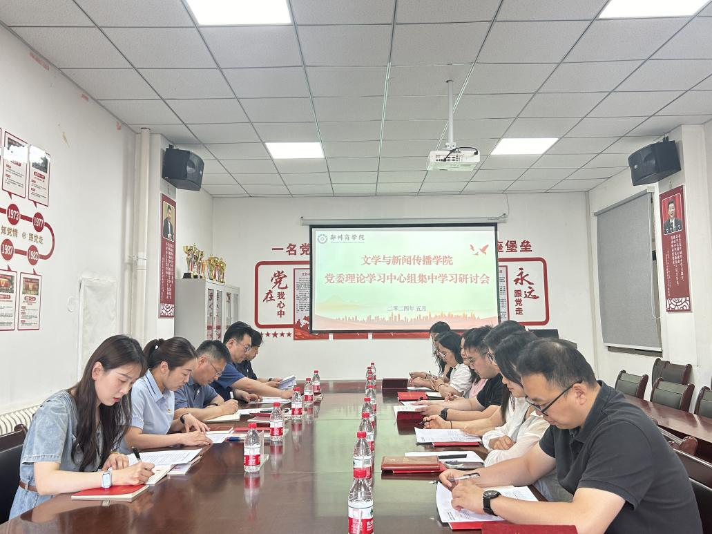 5月27日,文传学院于自力楼101会议室召开党委理论学习中心组集中学习研讨会,校党办邢坤主任、刘洋科长,我院党委委员及各党支部书记参加会议,会议由党委书记贾蓓主持。