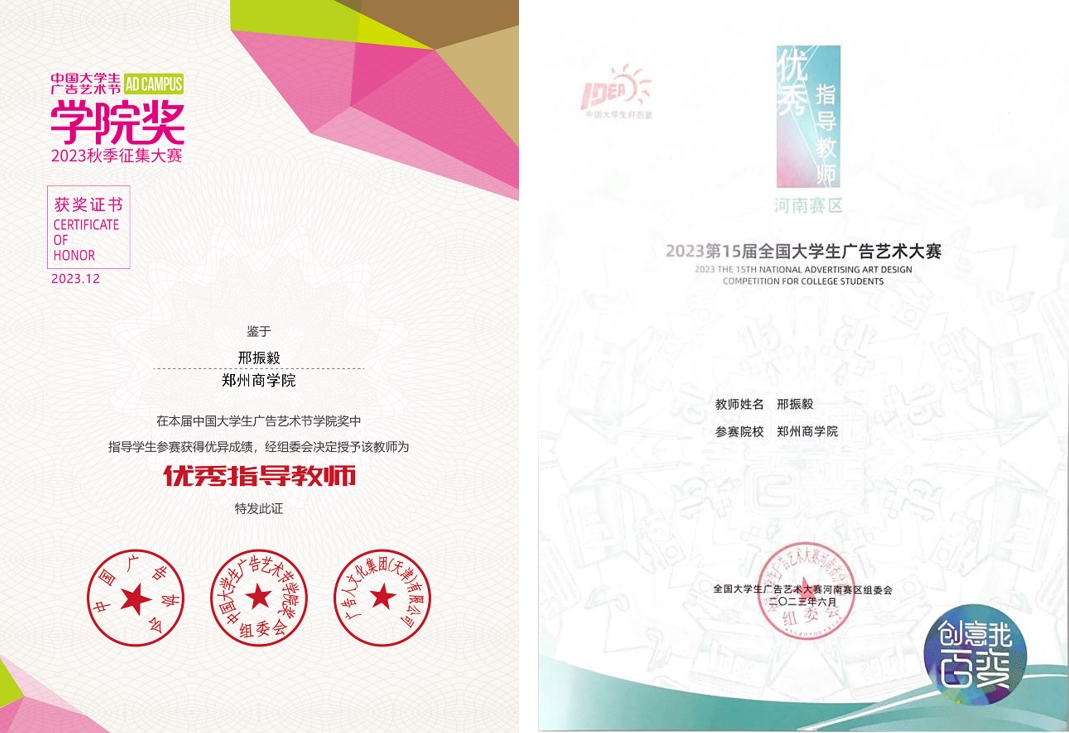 《广告业务实训》采用了多元化的评价方式,加大了过程性评价的权重,平时成绩占比60%,包括考勤成绩占比5%;课堂作业占比20%,主要为拍摄杜甫文化、豫商文化广告宣传片等;团队任务占比35%,主要为参加中国大学生广告艺术节学院奖。期末综合考核以项目作品替代传统的闭卷纸质考核的方式,这部分占比 40%。在期末,以“开发团队”为单位共同完成一个本课程所学的综合项目,即参加全国大学生广告艺术大赛,并且每个团队在完成综合项目后需要一名成员对自己团队完成的项目进行讲解和答辩。教师根据项目评价表为每个团队的作品打分。这种评价方式贯彻了学生中心、成果导向的教学理念。近年来人才培养成果显著提高,邢振毅老师多次荣获全国大学生广告艺术大赛优秀指导教师、中国大学生广告艺术节学院奖优秀指导教师,指导学生团队在国家级A类赛事中多次取得历史性突破。