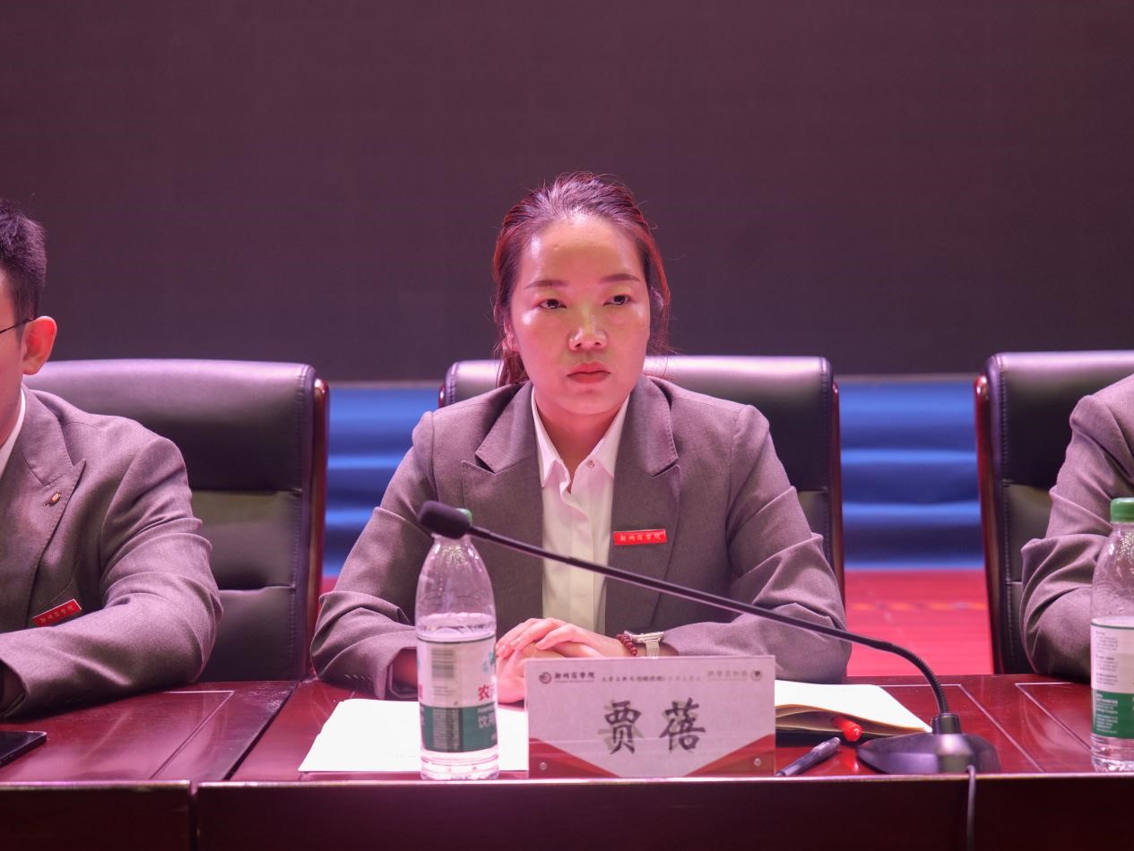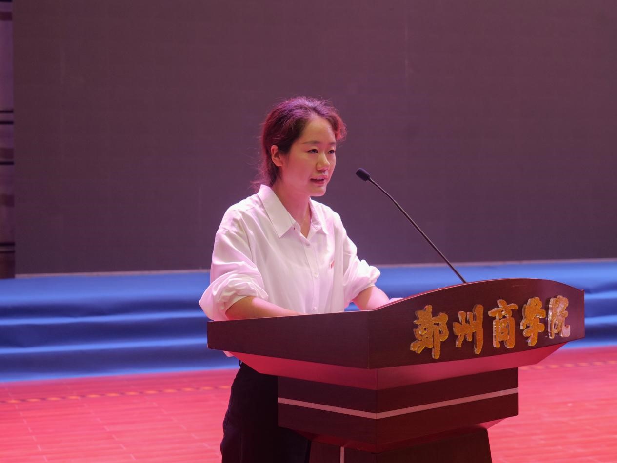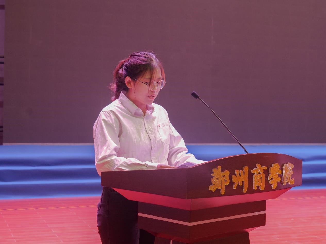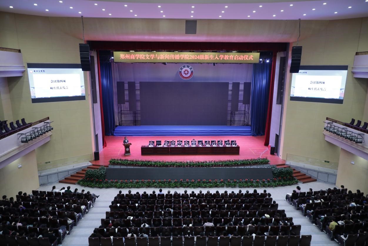 党委书记贾蓓致辞,代表学院向全体2024级新生表示热烈欢迎,青春洋溢的新生学子加入郑商这个大家庭,为学校增添了无限的活力与希望。她对新生们提出了四点寄语:一是不忘初心,加紧学习;二是多读书、读好书、积极写作;三是主动转换身份角色;四是脚踏实地,具有实干精神。希望同学们珍惜大学美好时光,谨记“勤俭朴实、自力更生”的校训精神,勇敢逐梦,收获满满。