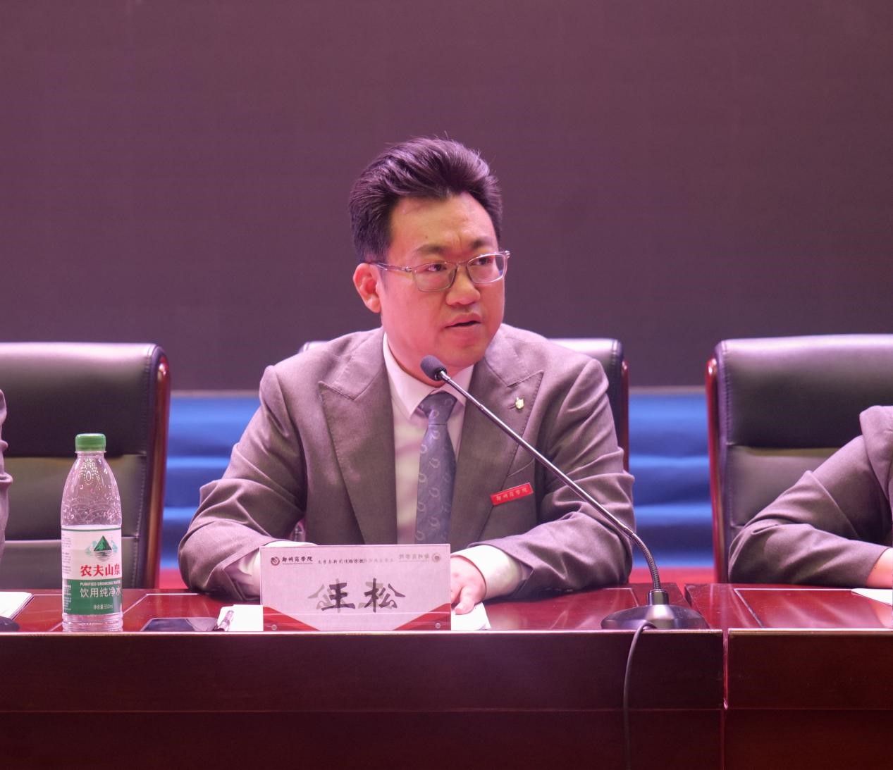 院长王松总结讲话,围绕“郑商之源、郑商之魂和文传之路”三个方面深入浅出的向同学们介绍了郑商的办学理念及文传学院的教育特色。郑商之源,介绍了创办人王广亚先生的故事,他始终坚持公益性办学,不以营利为目的,不要求任何回报,办学初衷就是回馈家乡、培养人才;郑商之魂,介绍了创办人的办学理念、办学精神、行事准则、办学原则以及“勤俭、朴实、自力、更生”的校训,介绍了董事长提出“目标与行动”“团队与责任”“态度与细节”的办学要求,介绍了吴校长提出的“以学生为中心、以教师为主体、以服务为导向、以制度为保障”的治校方略;文传之路,从文化的角度介绍巩义这座城市的故事,在介绍巩义悠久历史古韵和文传学院基本情况的基础上,希望同学们厚植这片土地的文化底蕴,读万卷书,行万里路,用心传承和发扬,做一名德才兼备的合格大学生。