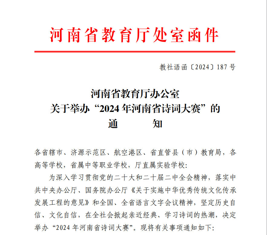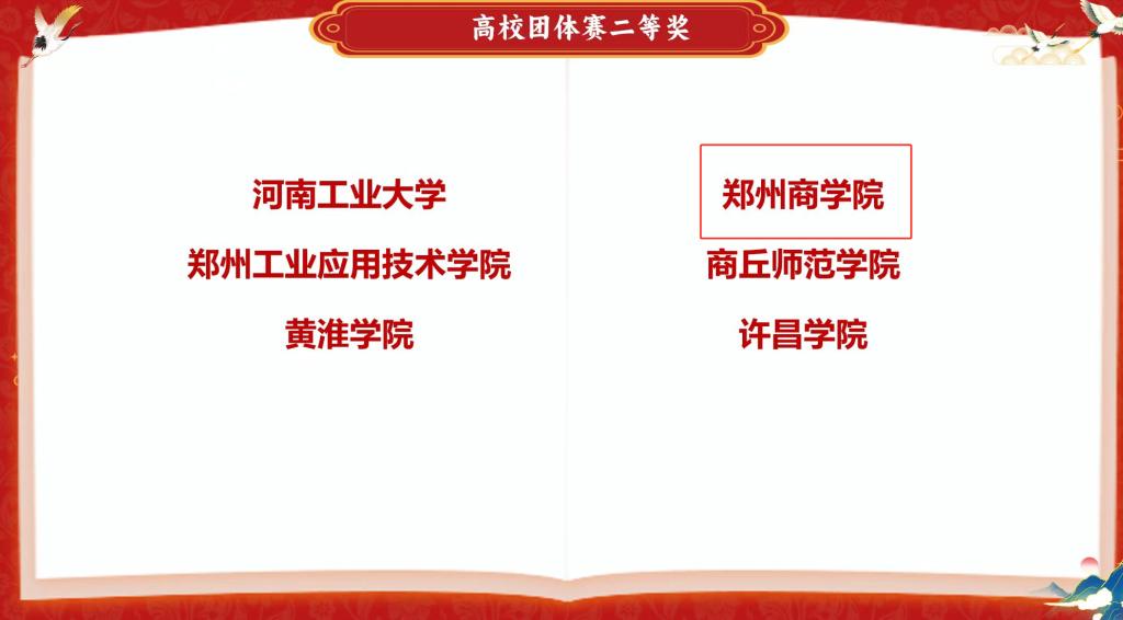 近日,2024年河南省诗词大赛决赛获奖名单公布,点点官网文传学院王瑞聪、王传飞、苌笑寒、田一辰、闫思宇、张甜甜六位同学在比赛中取得优异成绩,赢得了两项殊荣,其中包括个人赛一等奖和团体赛二等奖。