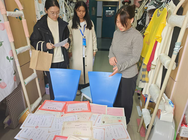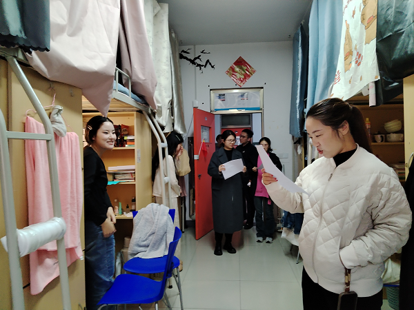 11月14日下午,文传学院党委书记贾蓓、团委书记王凯率五个专项小组深入学生宿舍,依次走访初评宿舍。在走访期间,贾蓓书记与各专项小组老师认真了解学生们的学习与生活情况,从安全秩序、内务卫生、精神风貌、遵章守纪、学业成绩这五项基本条件入手进行打分评比,最终确定了本学期文传学院的“特色宿舍”。