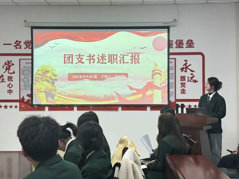 会议由组织部陈曦同学主持,各班级团支书依次上台进行述职汇报。团支书们详细汇报了本学年各自团支部的青年大学习检查情况、主题团会开展情况、智慧团建团课录入情况、团费收缴情况等各项工作。同时,他们也分享了工作中遇到的困难与应对措施,并进行了深刻的反思与总结,从中吸取经验,不断提升工作水平。
