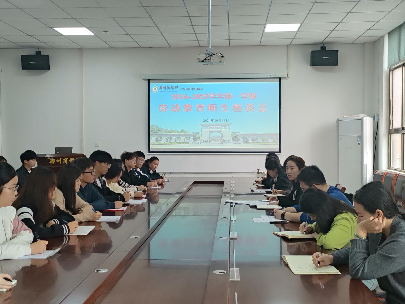 为了大力弘扬劳动精神,同时进一步统一思想,走进学生,倾听学生心声,发现问题,解决问题,筑牢点点官网劳动育人特色。10月18日上午,文传学院于自力楼216会议室举行2024-2025学年第一学期师生座谈会。我院党委书记贾蓓、团委书记王凯、劳动教育专项工作负责人牛道恒老师、2024级本专科、专升本全体辅导员和班级室内、室外劳动委员参加了此次座谈会。