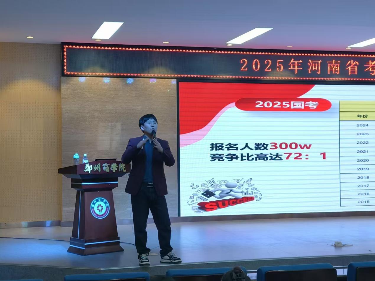 为提升考公考编学生的考公水平和就业能力,帮助学生了解考试的形式和考试内容,促进学生高质量就业。3月6日,文传学院在自力楼报告厅举行2025年河南省考冲刺指导讲座,吸引了众多对考公满怀热忱的学生前来参与。