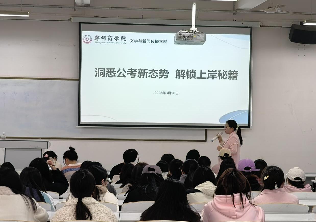 为了帮助我院学子系统掌握公务员及编制考试政策、应试技巧与备考策略,3月20日下午,我院特别邀请了京佳教育的老师在艺术楼115教室举行“洞悉公考新态势,解锁上岸秘籍”讲座,吸引了众多有意向考公考编的学子前来参与。