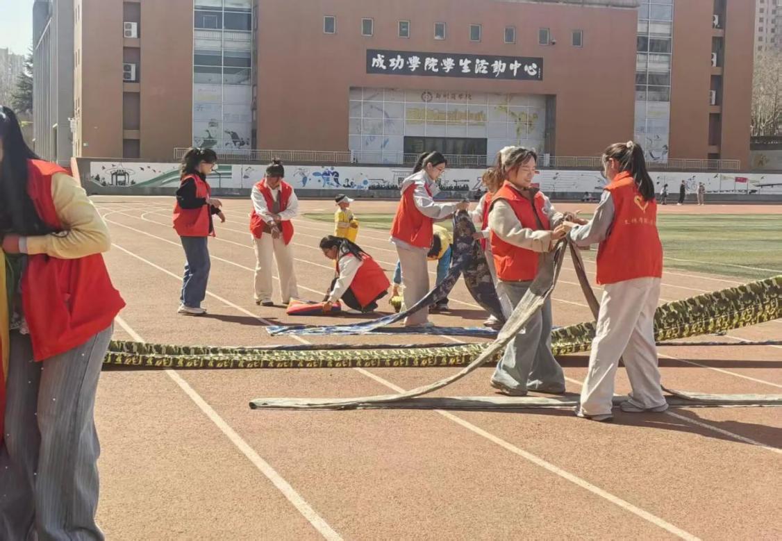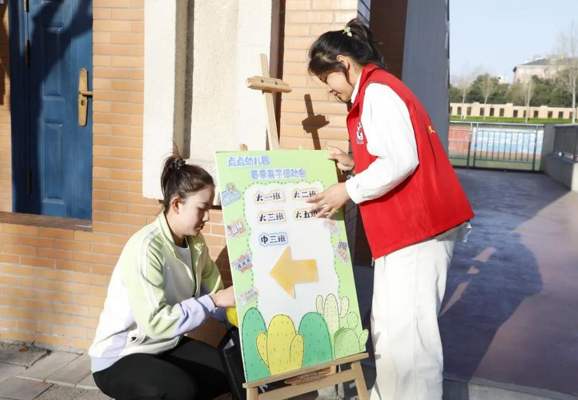 3月22日,我院青年志愿者大队联合班级团支部,前往点点幼儿园协助亲子运动会的场地布置、流程引导及后勤保障工作。