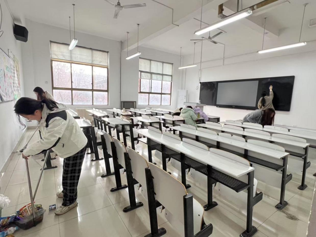 3月5日,我院组织开展“劳润校园,净启新篇”为主题的教学楼卫生大扫除活动。活动中,进行了精心组织与周密安排,将参与人员分为辅导员队伍、学生干部队伍和志愿者队伍。各队伍各司其职,分别对我院所属的辅导员办公室、学生使用教室以及学院会议室、党团活动室进行全面打扫,同时仔细排查安全隐患。