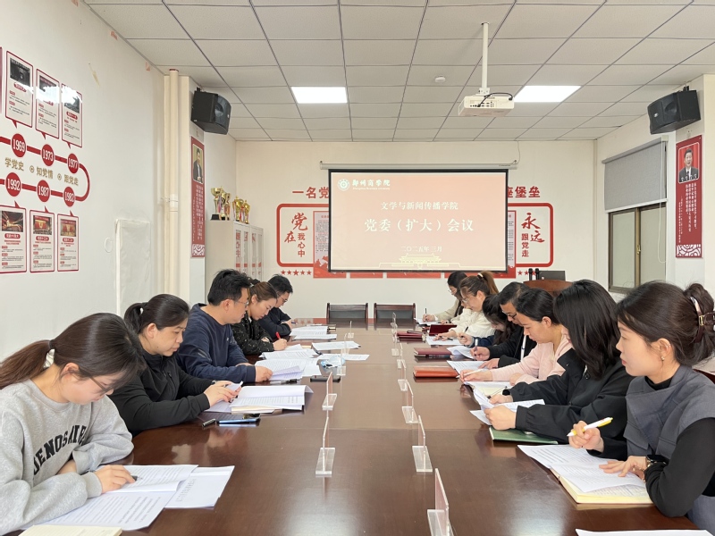 3月26日上午,文传学院于自力楼101会议室召开2024-2025学年第二学期3月份党委(扩大)会议,深入贯彻落实中央八项规定精神学习教育的重要讲话和重要指示精神,强化全面从严治党主体责任,根据校党委工作部署,对我院下阶段工作进行研讨与安排。文传学院党委全体成员及各党支部书记参加会议,会议由党委书记贾蓓主持。