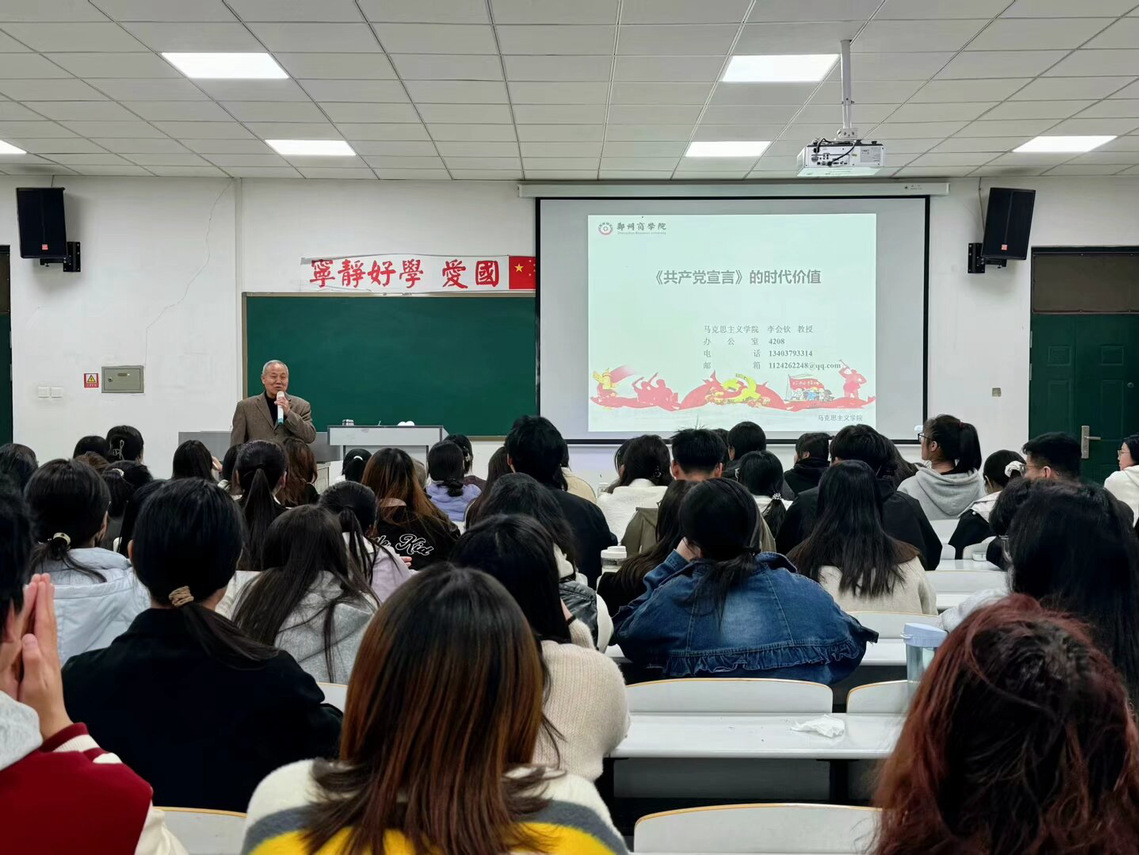 党课第一讲由马克思主义学院李会钦教授主讲,他以“《共产党宣言》的时代价值”为主题,从“《共产党宣言》发表的时代背景及其影响”“《共产党宣言》的理论精髓”和“《共产党宣言》的时代价值”三个方面展开讲述。通过对《共产党宣言》的详细讲解,全体学员深刻领会了《共产党宣言》的历史价值和当代意义,进一步坚定自身理想信念、增强履职能力。