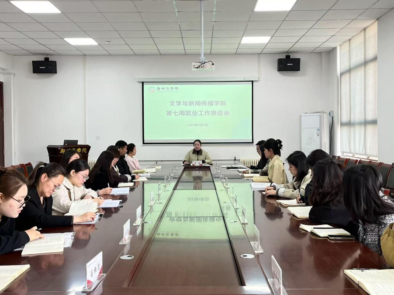 4月1日,学院召开第七周就业工作推进会,学院党委书记贾蓓、团委书记王凯及全体辅导员参加会议。