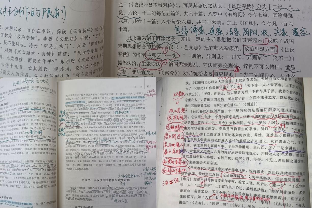 学习文学史,不能只停留在对文学史发展脉络的把握上,也不能仅仅满足于认识了一位位才华卓绝、思想非凡的作家。对于学生来说,更重要的是从文学史的角度认识中华文化的深邃,从文人、作品的思想内核中汲取提升自我的养分。于老师在课堂上注重引导学生挖掘作家、作品中的积极精神,比如晁错的深刻、司马迁的坚韧,《吕氏春秋》中的智慧、《上林赋》中的反思;并善于引导学生结合当下实际,联系自身,找到他们可以从中学习到的做人、求学、处事等方面的法则。