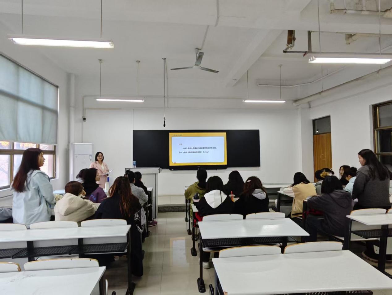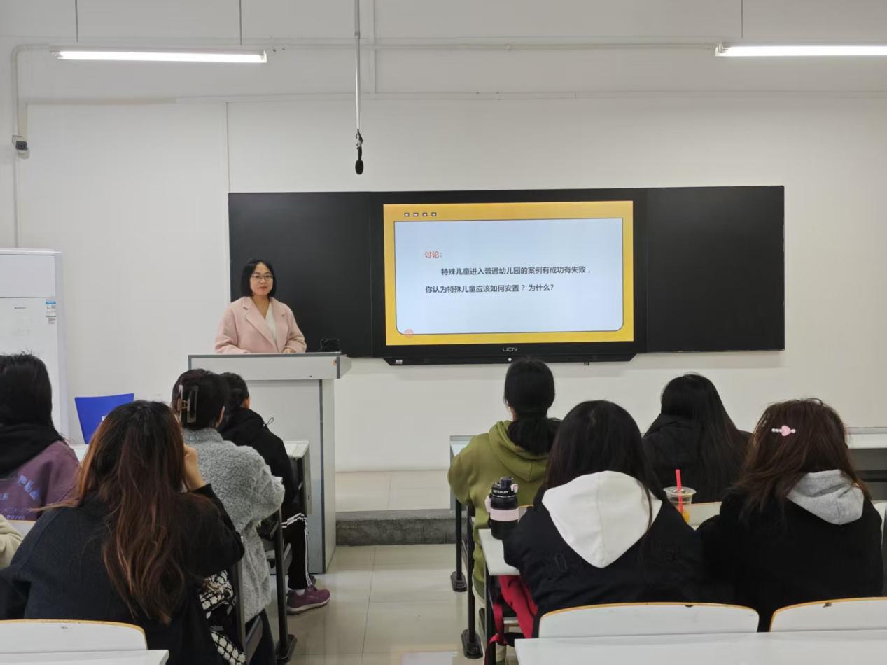 张素琪老师以“问题驱动”策略为核心,将课堂设计为“案例导入—观点碰撞—理论升华”三阶段。她首先抛出案例:“一名自闭症儿童因行为问题多次被幼儿园拒收,家长陷入无助。”这一贴近现实的场景迅速引发学生共鸣。随后,学生分为正反两方,分别从政策支持、资源分配、社会包容度等角度,论证特殊教育学校与普通幼儿园融合教育模式的利弊。