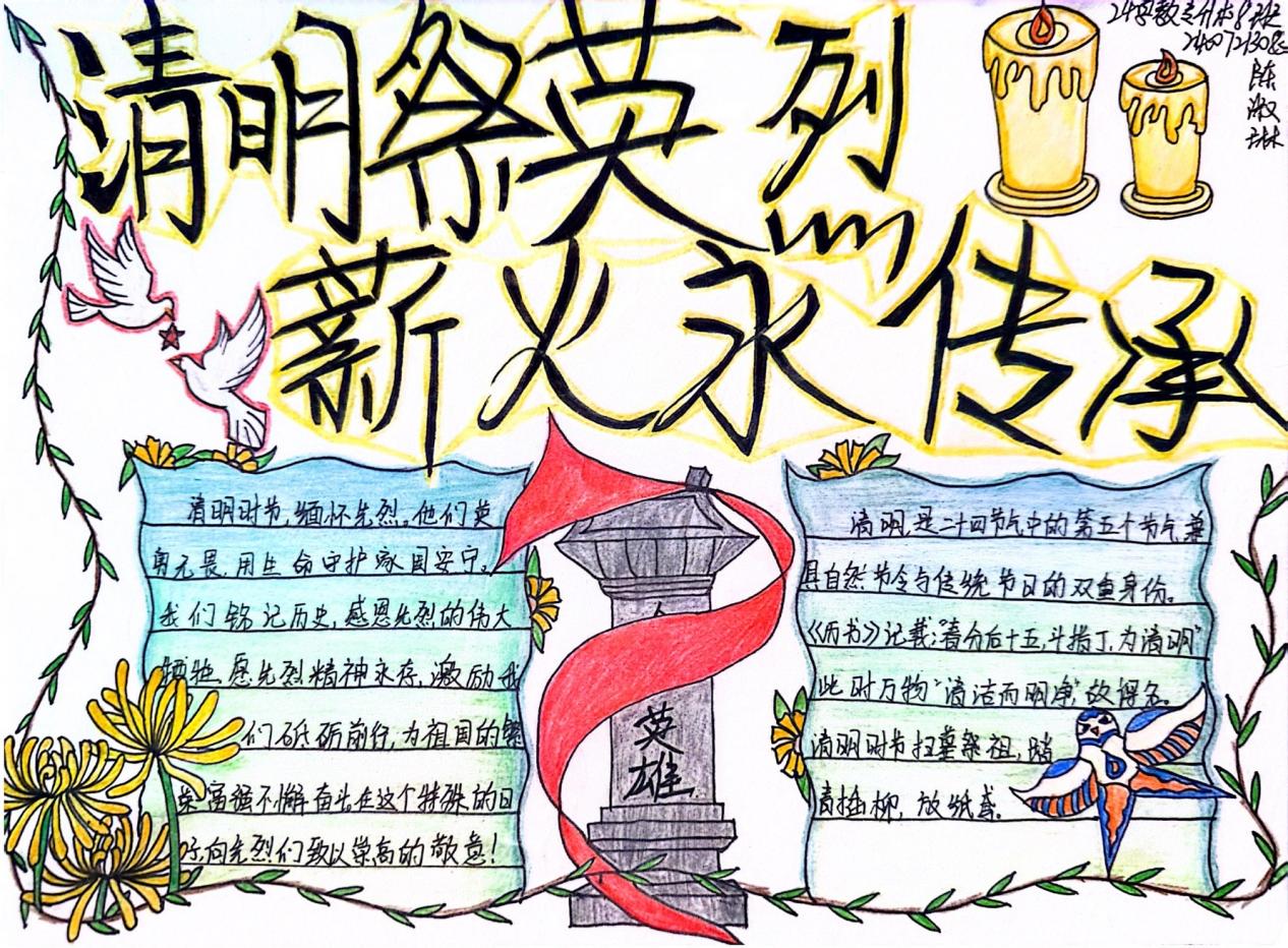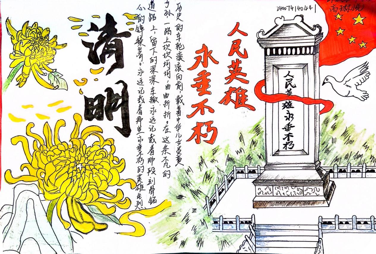 为深入贯彻落实爱国主义教育精神,缅怀革命先烈的丰功伟绩,传承红色基因,弘扬英烈精神,进一步强化同学们对历史的铭记与敬意。我院于4月1日至4月6日组织开展了“清明祭英烈,薪火永传承”手抄报活动。