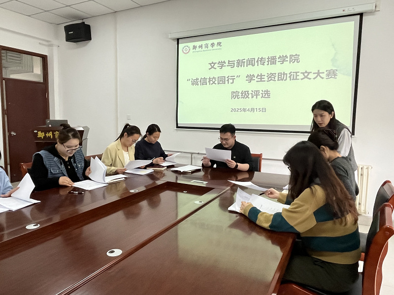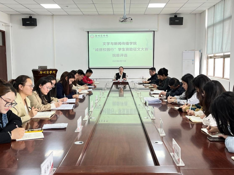 2025年4月15日,文传学院召开“诚信校园行”资助征文大赛院级评选,党委书记贾蓓强调了评选要求及评选标准,团委书记王凯带领各年级长查阅学生征文,最终选出15份优秀作品推荐至校级评选。
