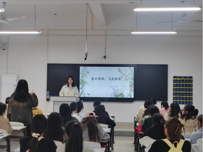 为弘扬中华优秀传统文化,激发学生阅读文化经典的热情,营造充满诗意与文化底蕴的春日校园氛围,4月11日至4月17日,文传学院精心策划并成功举办了以“春日诗韵,飞花雅集”为主题的班级诗歌比拼活动,活动吸引了全院学生的广泛关注与积极参与。