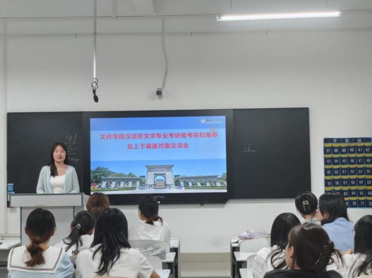 为帮助2026届考研学子精准定位目标院校与专业,4月29日,汉语言文学专业开展了考研交流活动,汉语言文学专业考研考证负责人禹月娜,邀请了考研指导教师和2025届考研上岸学生,在H210教室开展交流会,围绕本专业,系统梳理院校选择策略与备考经验。