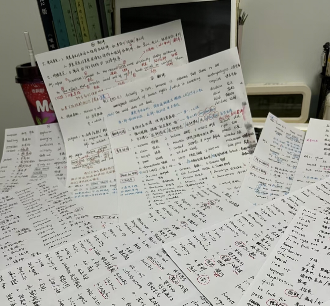 英语单词背诵,采用“艾宾浩斯遗忘曲线”制定计划,利用碎片时间用APP记忆,重点单词结合真题例句加深理解。