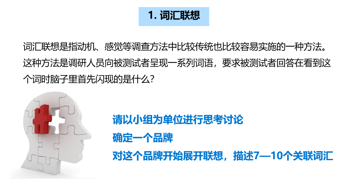 舒雅老师以“词汇联想法”与“完形填空法”为双引擎,引导学生解构品牌定位逻辑。课堂中,学生通过“词汇联想法”对某国产运动品牌进行关键词提炼,比如“国潮”“高性价比”等,迅速捕捉消费者心智标签;随后借助“完形填空法”,模拟品牌标语创作,比如“XX品牌,为______而生”,深化对差异化定位的理解。精致的PPT课件与真实商业案例相辅相成,抽象理论转化为可操作的实战工具,课堂节奏紧凑高效。