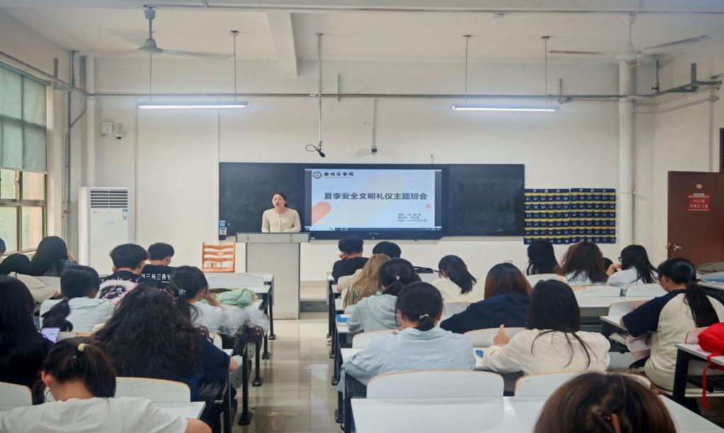 班会伊始,各班辅导员以夏季典型案例为切入点,结合新闻视频,直观展现溺水、火灾、交通等安全事故的危害,以及公共场合不文明行为对校园秩序的影响。随后,各辅导员老师进行了文明礼仪教育,要求同学们注意课堂礼仪,宿舍里要保持卫生整洁,在公共场合,勿大声喧哗。让同学们认识到当代大学生学习文明礼仪的重要性。最后,辅导员老师呼吁同学们做一个文明有礼的新时代青年,督促学生们将文明礼仪知识融入日常实践之中,养成文明习惯。