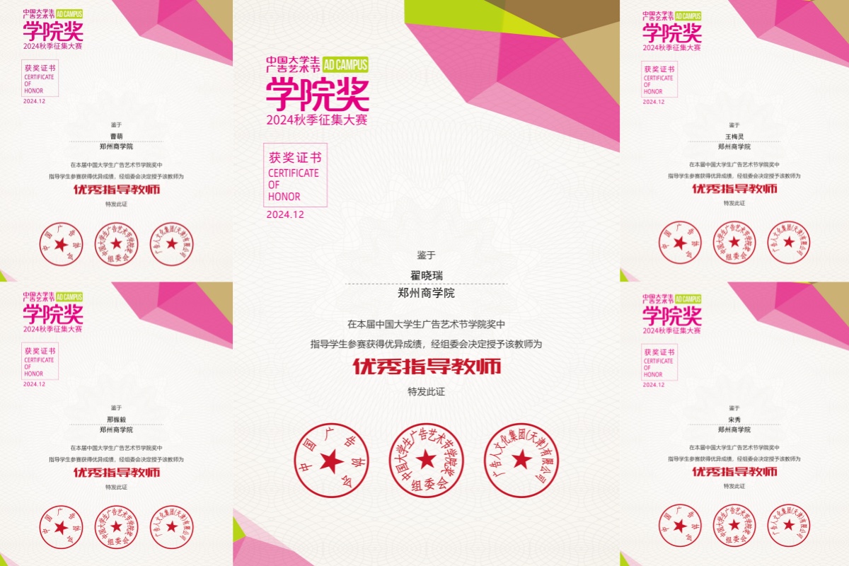 近日,经国家工商行政管理总局正式批准,并由中国广告协会倾力主办的“中国大学生广告艺术节学院奖2024年秋季征集大赛”圆满落幕,其获奖名单正式对外公布。在此次大赛中,我院学子表现出色,共斩获17项大奖。同时,翟晓瑞、邢振毅、曹萌、王梅灵、宋秀5位教师凭借其卓越的指导能力,荣获“优秀指导教师”殊荣。