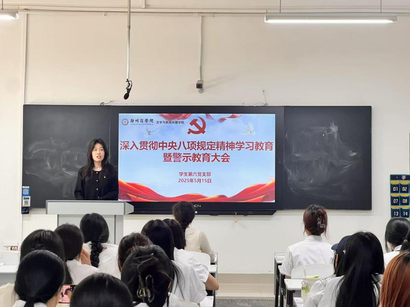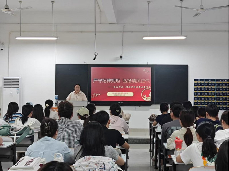 我院教师第一、二、三党支部,学生第一、四、五、六、七党支部开展“推动深入学习贯彻中央八项规定精神学习教育走深走实”专题学习会。会上,各党支部书记围绕中央八项规定精神核心内容,结合校园实际案例,从学风建设、文明习惯的养成等方面展开讲解,呼吁支部成员们要以高标准严格要求自己,做优良作风的践行者和传播者。大家表示,今后将从遵守课堂纪律、杜绝铺张浪费、抵制网络不良信息等小事做起,充分发挥先锋模范作用,带动身边同学共同营造风清气正的校园环境。