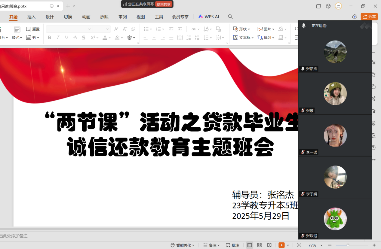 班会中,辅导员老师首先聚焦政策要点,明晰责任义务。结合最新的国家助学贷款政策文件,对毕业生们关心的核心问题进行了清晰透彻的解读。