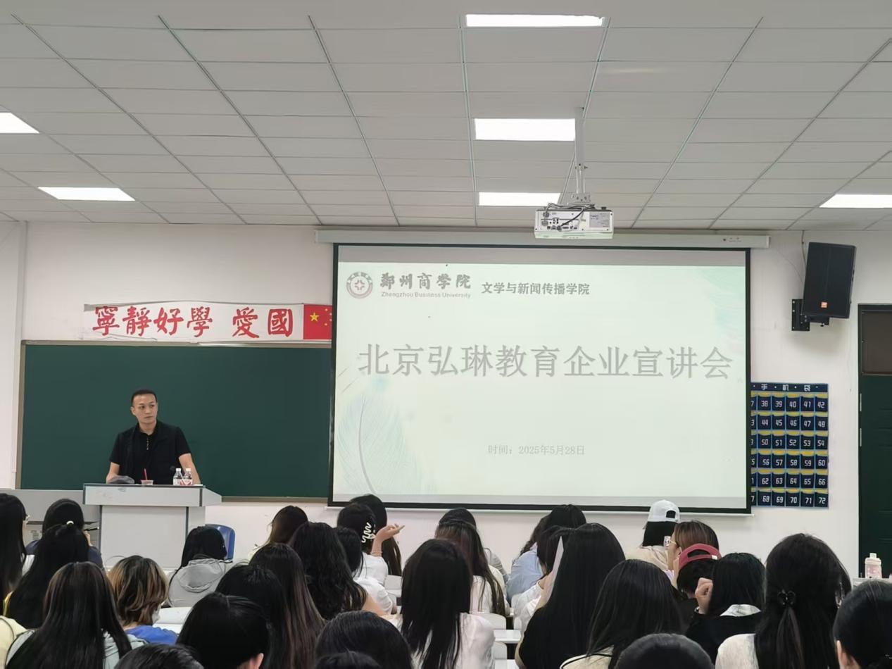 为助力我院毕业生实习实训工作顺利进行,5月28日下午,我院于艺术楼210举办北京弘琳教育企业宣讲会,本次宣讲会邀请北京弘琳教育公司的袁老师向毕业生们进行实习宣讲。