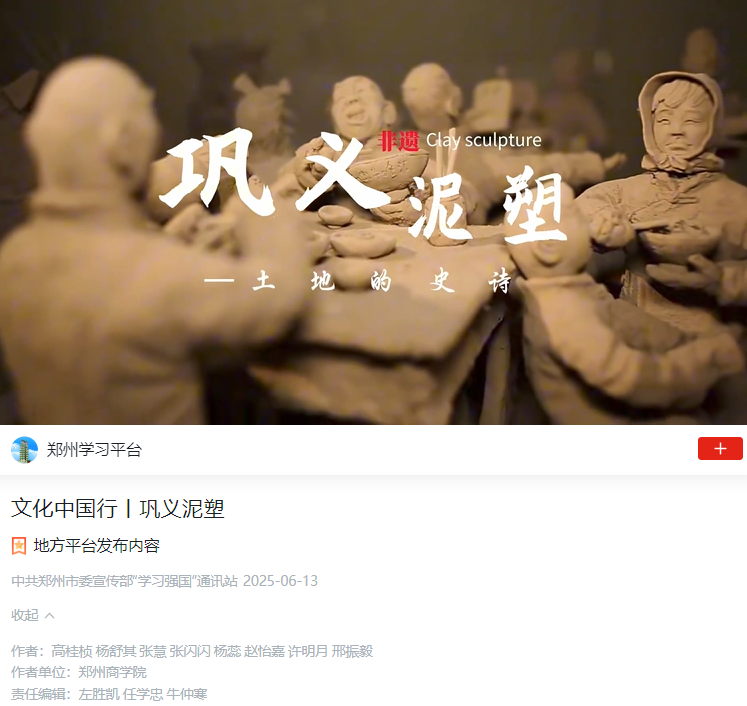 学生团队在高桂桢、翟晓瑞、许明月、邢振毅老师的带领下,利用AI技术开展文献研究,深入实地考察调研,充分挖掘河南地方非物质文化遗产资源,通过活化创新,将传统技艺、民俗活动、表演艺术等文化元素巧妙地融入现代创意,形成的独特文化艺术表达成果。并紧扣“中原文化”并以短视频的艺术表现形式呈现研究成果,最终创作出《伏羲印记》、《女娲补天》、《河图洛书》(三集)、《洛神传说》、《巩义泥塑》、《巩义白瓷》、《回郭镇肉合》等13个系列作品。