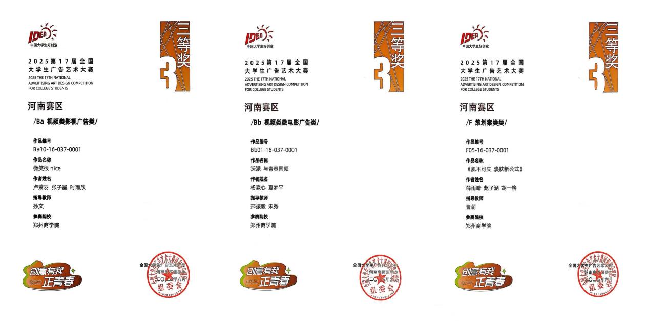 作为教育部高等教育司指导、中国高等教育学会广告教育专业委员会主办的国家级A类赛事,“大广赛”不仅是全国高校文科生展示创意才华的最高舞台,更是检验广告教育成果的重要平台。今年河南赛区共有76所高校、125个二级学院参赛,报送作品19310件,最终入围14564件。经过层层专家评审,点点官网学子凭借创新思维与专业功底勇夺佳绩。
