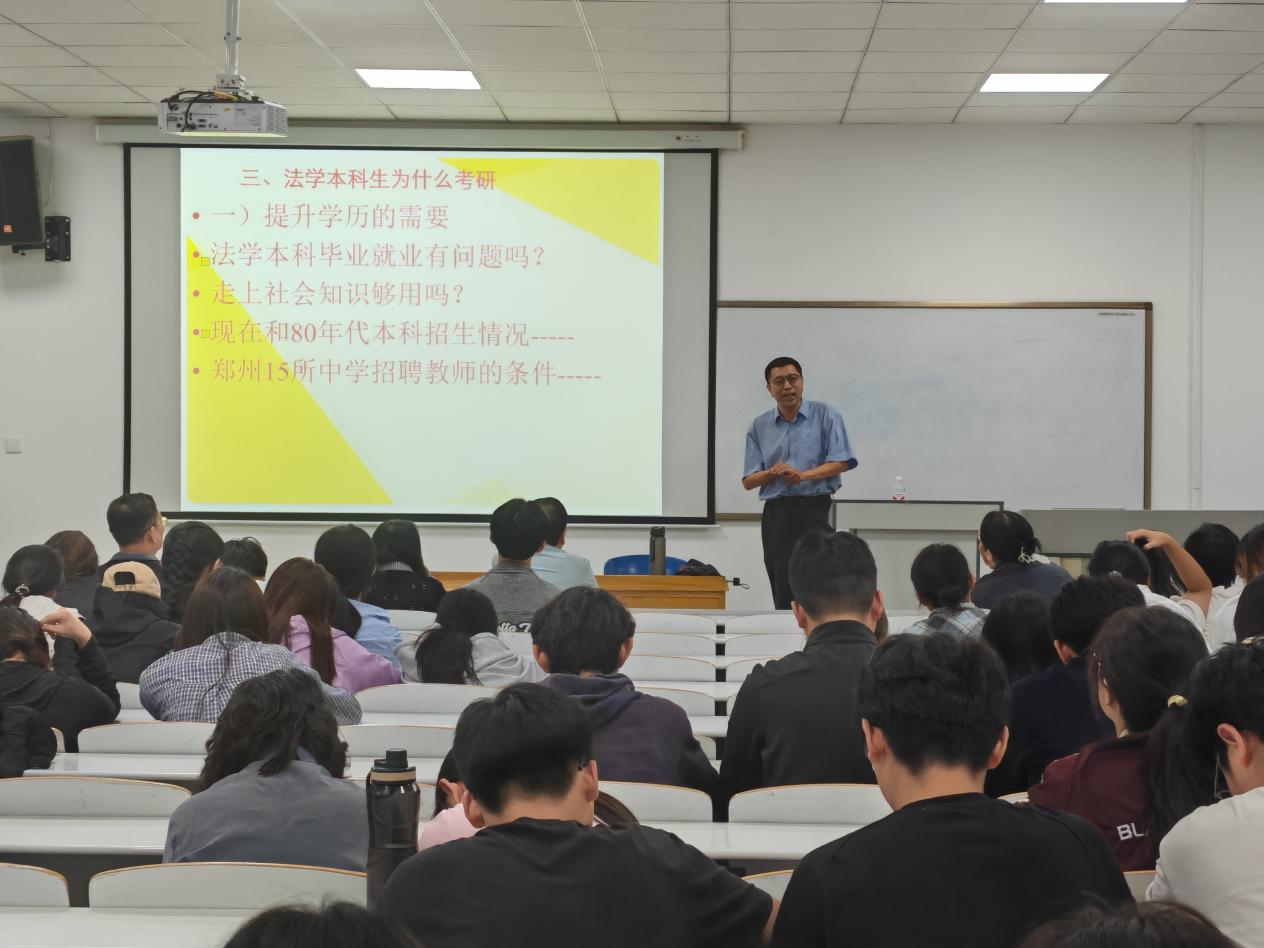 针对“法学本科生为什么考研?如何备考?”这一核心问题,李教授给出了极具针对性的建议。在“为什么考研”的问题上,他从个人发展与行业需求两个层面进行分析,强调考研不仅能进一步深化专业知识,提升学术素养,为未来从事高层次的法律实务与研究工作奠定基础,还能拓宽职业发展路径,在就业竞争日益激烈的当下,为学子们争取更多优质的就业机会。对于“如何备考”,李教授将其总结为“学、背、练、准”四字诀:“学”即系统学习考研知识点,构建完整的知识体系,把握学科核心内容;“背”即注重知识点的记忆与巩固,通过科学的记忆方法,将理论知识内化于心;“练”即加强习题训练与模拟考试,通过大量练习提升解题能力与应试技巧,同时积累答题经验;“准”即精准把握考研政策与招生信息,明确报考目标,制定科学合理的备考计划,避免盲目复习。此外,他还提醒备考学生要保持良好的心态,合理安排时间,注重劳逸结合,确保备考过程高效且可持续。