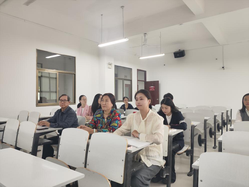 汇报课环节结束后,副院长曹萌就两位老师的说课内容和其他各位老师进行交流,她强调了在新媒体时代背景下,教学改革与创新的紧迫性。重点探讨了如何将信息化教学、内容由浅入深的设计理念与考研辅导进行有机融合。她提出,首先要充分利用信息化教学平台与工具,引导学生进行思辨性交流,能打破课堂时空限制,激发学生学习主动性。其次在课程内容设计上,需遵循由浅入深、循序渐进的科学规律。做到从基础知识掌握到综合能力提升、再到学术素养深化的内在逻辑相契合,使日常教学自然成为考研备考的坚实基础和有效延伸。最后,针对考研这一学生关注的重点,要能够高年级专业核心课程中有机融入考研导向。