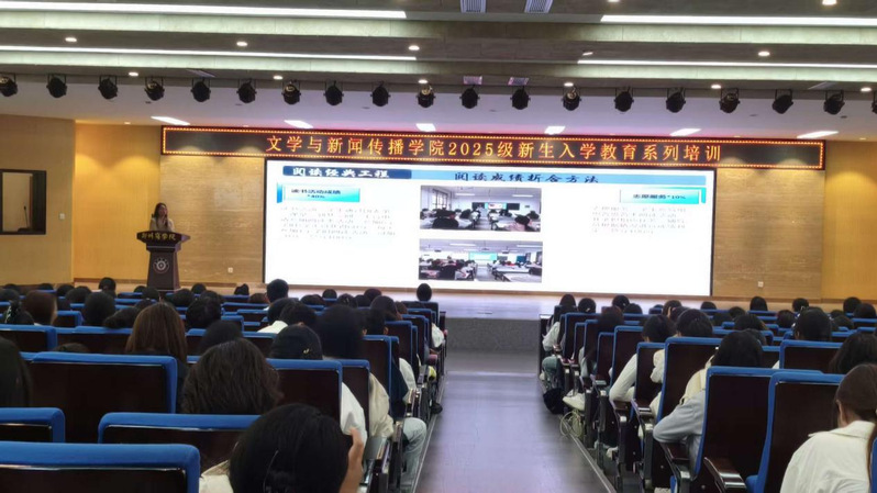 为帮助25级新生养成良好的阅读习惯,了解学校阅读活动的开展形式和阅读学分获取办法,文传学院于9月26日下午在自力楼报告厅开展了2025级新生入学教育系列活动之“书香校园阅读经典工程”专题培训。本次培训由书香工作专项负责老师许艺冉主讲。