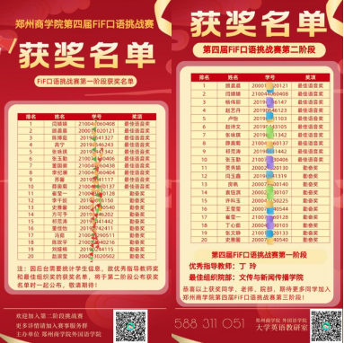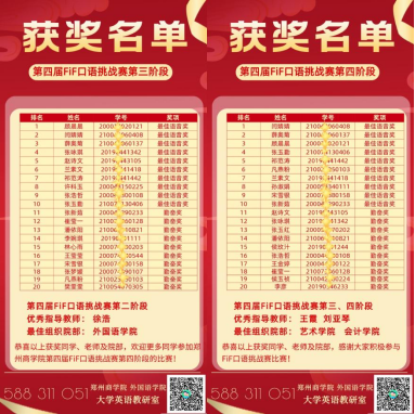 1月3日至2月18日,外国语学院举办了第四届FiF英语口语挑战赛,以赛促教、以赛促学,为提高学生英语口语交际能力注入动力。各院部积极组织学生在假期积极踊跃参赛,促使大赛取得积极反响。