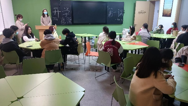 在度过美好的寒假、欢乐的春节生活之后,郑商学子分批次安全返校步入新的学期生活。2022年2月26日晚,外国语学院各班召开了2022学年春季学期寒假开学收心教育主题班会。班会首先以“开学前学生怎么收心,把精力投入到新的学期”为切入点,希望同学们能够尽快调整生物钟如按照学校的作息时间安排起居,进行适当的体育锻炼,保证上课学习时能够拥有旺盛的精力;转移注意力包括主动克制自己,把注意力转移到学习方面;设定目标制定计划如制定合理的工作学习计划,让自己每天在工作和学习过程中都能有所收获,力争开启新的征程。