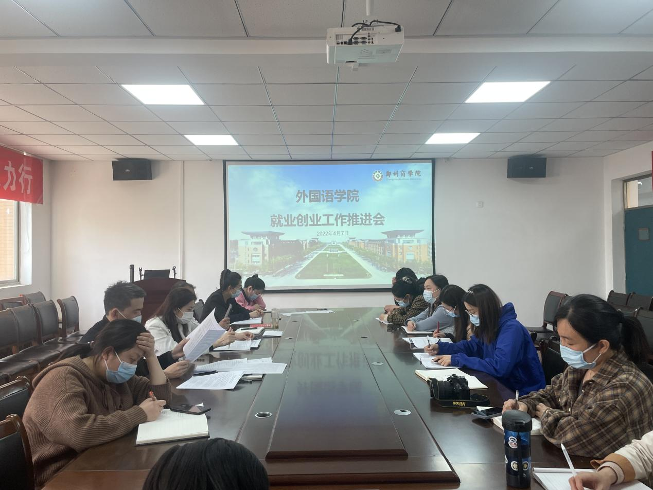 为贯彻落实河南省高校毕业生就业创业工作指导精神,做好我院2022届毕业生就业创业服务工作。我院于4月7日下午组织召开外语学院就业创业工作推进会。党委书记王克志、院长王勃、副院长邱培磊、团委书记张文娟、就业专员、毕业班辅导员参加了此次会议。