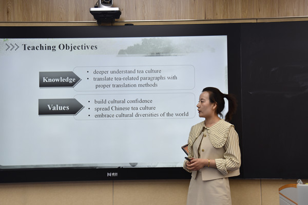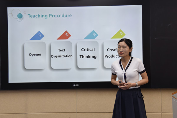 此次比赛面向我院所有中青年教师,经过初赛和复赛的激烈角逐,最终共有6位教师成功晋级决赛。决赛中要求每位教师使用10分钟时间完成一个课程章节说课,并完成现场答辩。各位参赛教师纷纷使出浑身解数,展示各自的教学设计和技能水平。参赛教师根据“成效导向”的课程设计理念和多元评价概念,普遍把“教评合一”活动分为课前、课中和课后三个环节,有助于调动学生参与语言学习和知识构建的积极性,体现了语言目标与育人目标的有机融合。