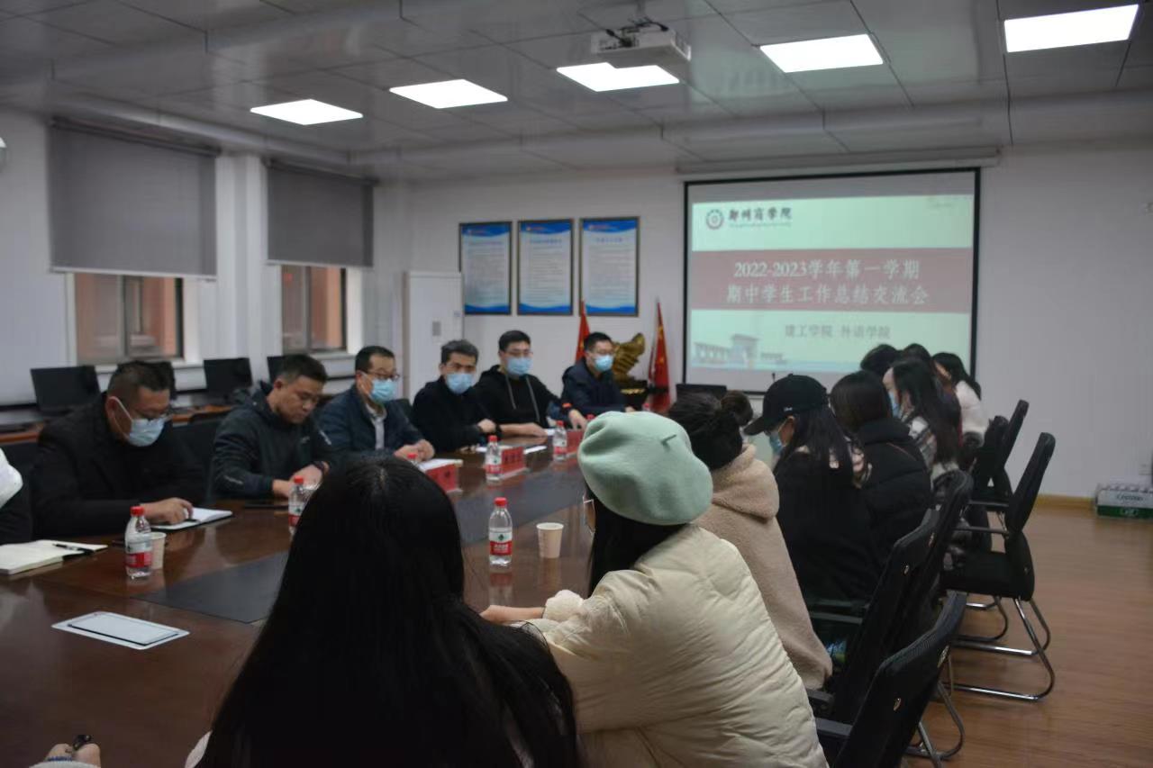 11月10日,我院组织开展2022-2023学年第一学期期中学生工作总结交流会。建工学院党委书记朱宏东、外语学院党委书记王克志、建工学院团委书记刘帅及建工学院、外语学院全体辅导员参加会议,会议通过线上、线下形式进行,会议由王书记主持。