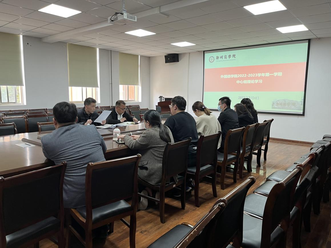 3月30日下午,外国语学院在W209召开2023年度党委理论学习中心组第一次会议。学院党委副书记邱培磊,全体党委委员参加本次会议,党委书记王克志主持会议。
