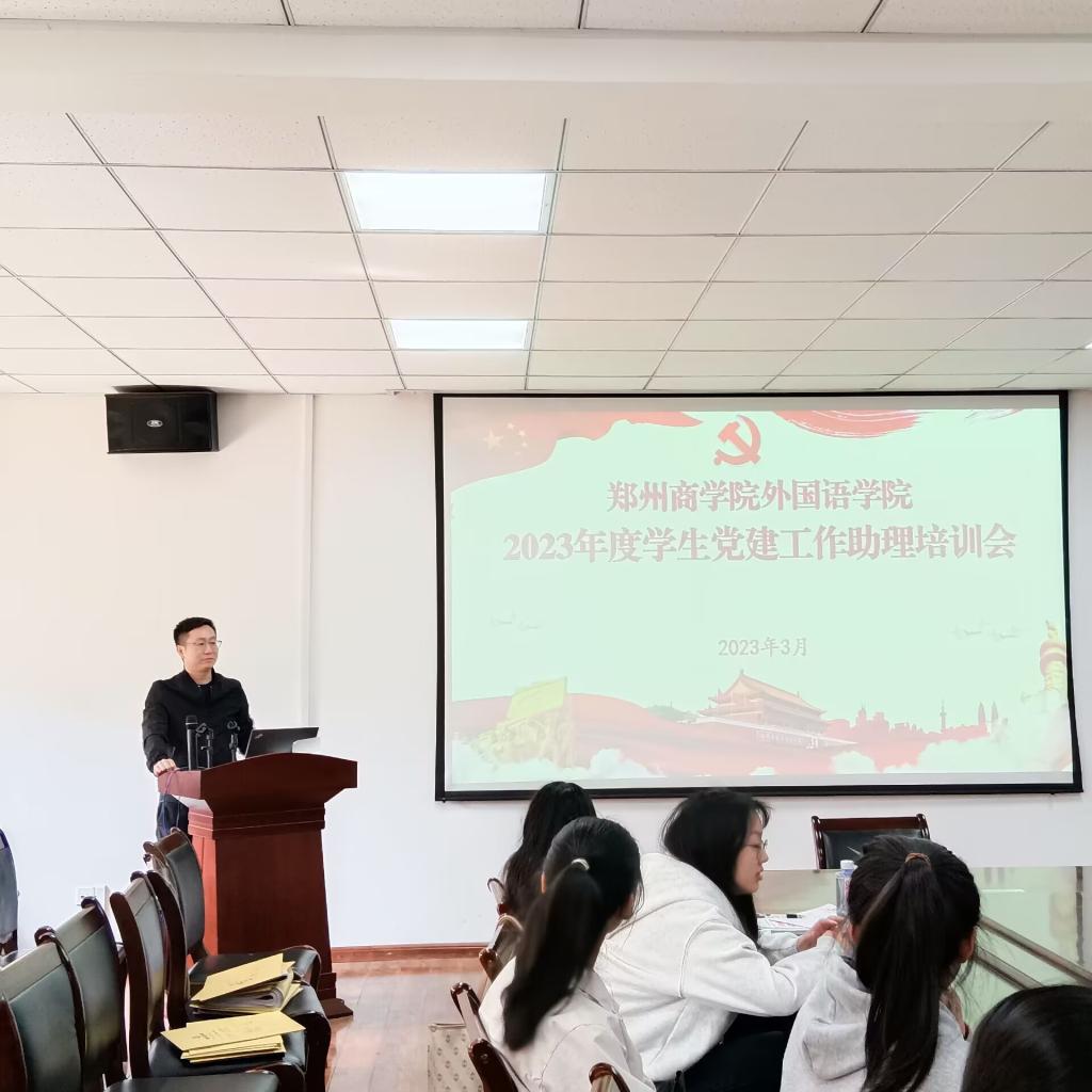 为提升外语学院入党积极分子、培养对象和党员的党建工作能力,4月3日,我院在外语楼W209会议室召开2023年度学生党建工作助理培训会,外语学院党委组织委员兰敬高,学院学生党建工作助理参加会议,会议由兰敬高主持。