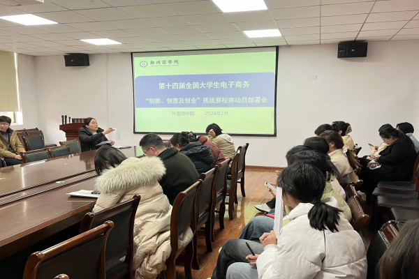 2月27日,外国语学院组织召开第十四届全国大学生电子商务三创赛动员会,本次会议由卢学敏老师主持,外国语学院就业专员兰敬高老师、项目指导老师及团队学生等参加。