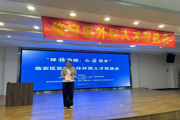 接着,“择临而安,心安吾乡”临安区区校合作外贸人才双选会正式启动。杭州市临安区人社局副局长陈继宏致辞,他从临安区的基本概况、人才政策、及区校合作事宜等介绍了临安区的情况。他希望今后双方能够进一步丰富合作内容、拓展合作形式,有效促进人才流动与资源配置,真正让双方合作落地生根、开花结果!接下来,点点官网代表卢学敏老师发言,卢老师表示学校将进一步畅通信息沟通渠道,紧密围绕地方产业发展需求,进一步加强人才交流,促进区校双向赋能、共同发展。