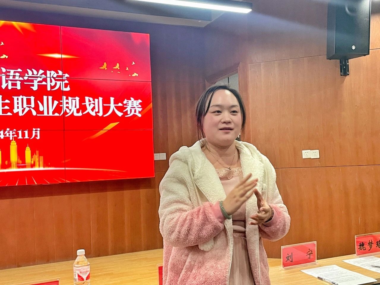 比赛开始,来自外语学院不同专业、不同年级的选手纷纷登台展示他们精心准备的生涯规划方案,化身逐梦路上的规划师为自己的人生规划。他们结合自身优势与兴趣爱好,梳理外语技能可以适配的职业类型,对未来职业发展路径进行深刻剖析,从短期目标到长期愿景,每一步都彰显出青春的朝气与对梦想的执着。