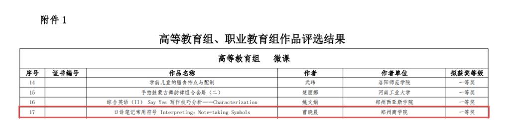 近日,河南省教育厅公示了第二十八届教育教学信息化交流活动评选结果,我院教师曹晓晨荣获一等奖。