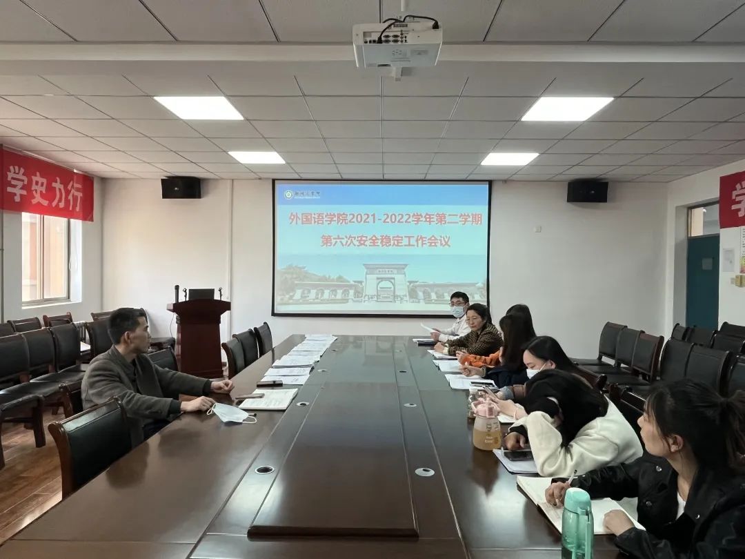 为进一步稳步推进疫情防控形式下学生管理工作,为学生营造安全稳定和谐的校园环境。4月5日下午,外国语学院召开2021-2022学年第二学期第六次安全稳定工作例会,党委王克志书记及全体辅导员参加会议。